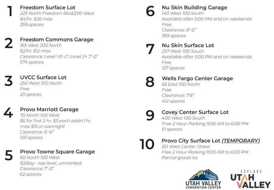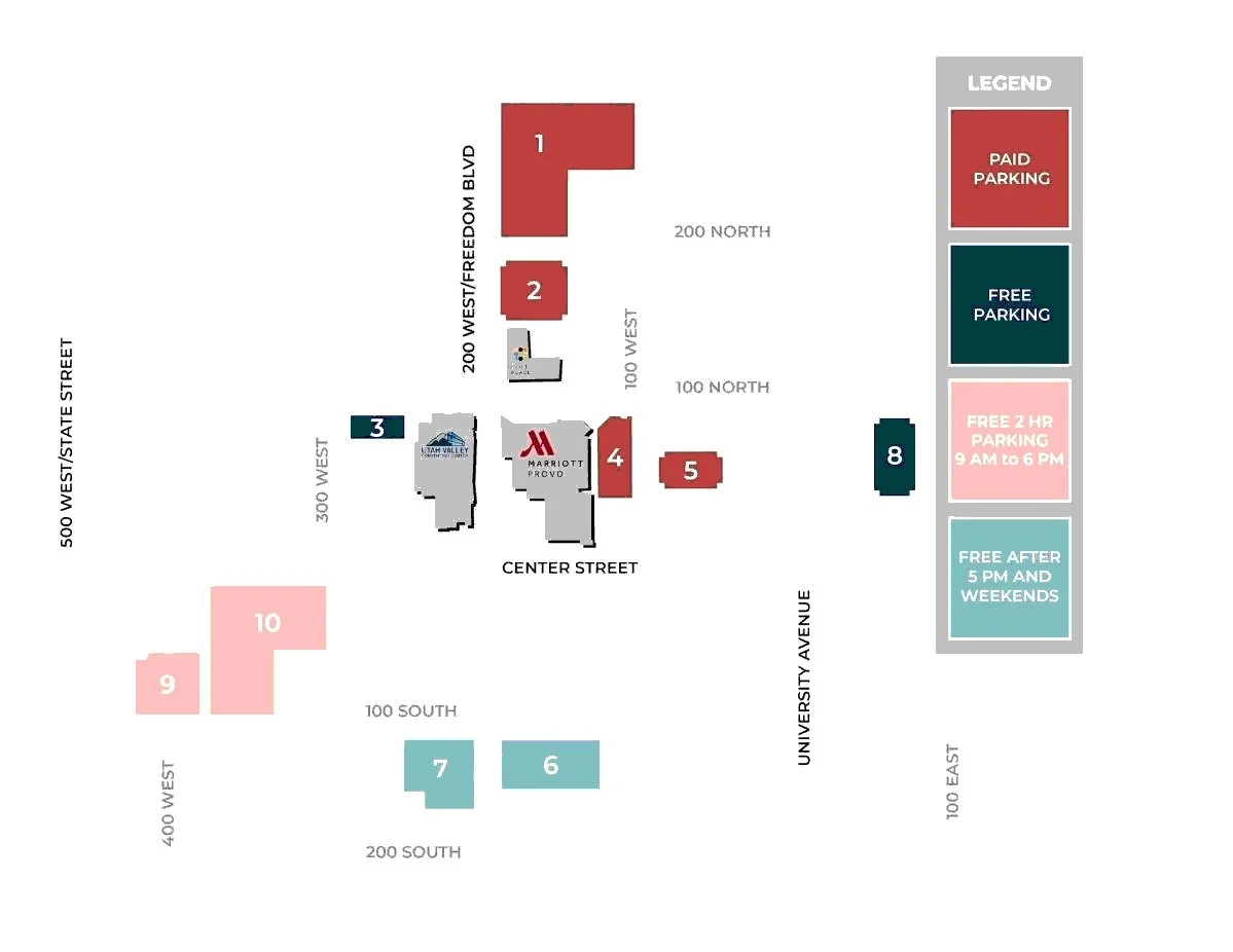 Zion’s Bank Parking: If you don’t mind walking a couple of blocks, there is also some free parking in the Zion’s parking tower just east of University Avenue. Not all spaces are free, so pay close attention to the signs. Note: Zion’s Bank garage does NOT have an elevator.